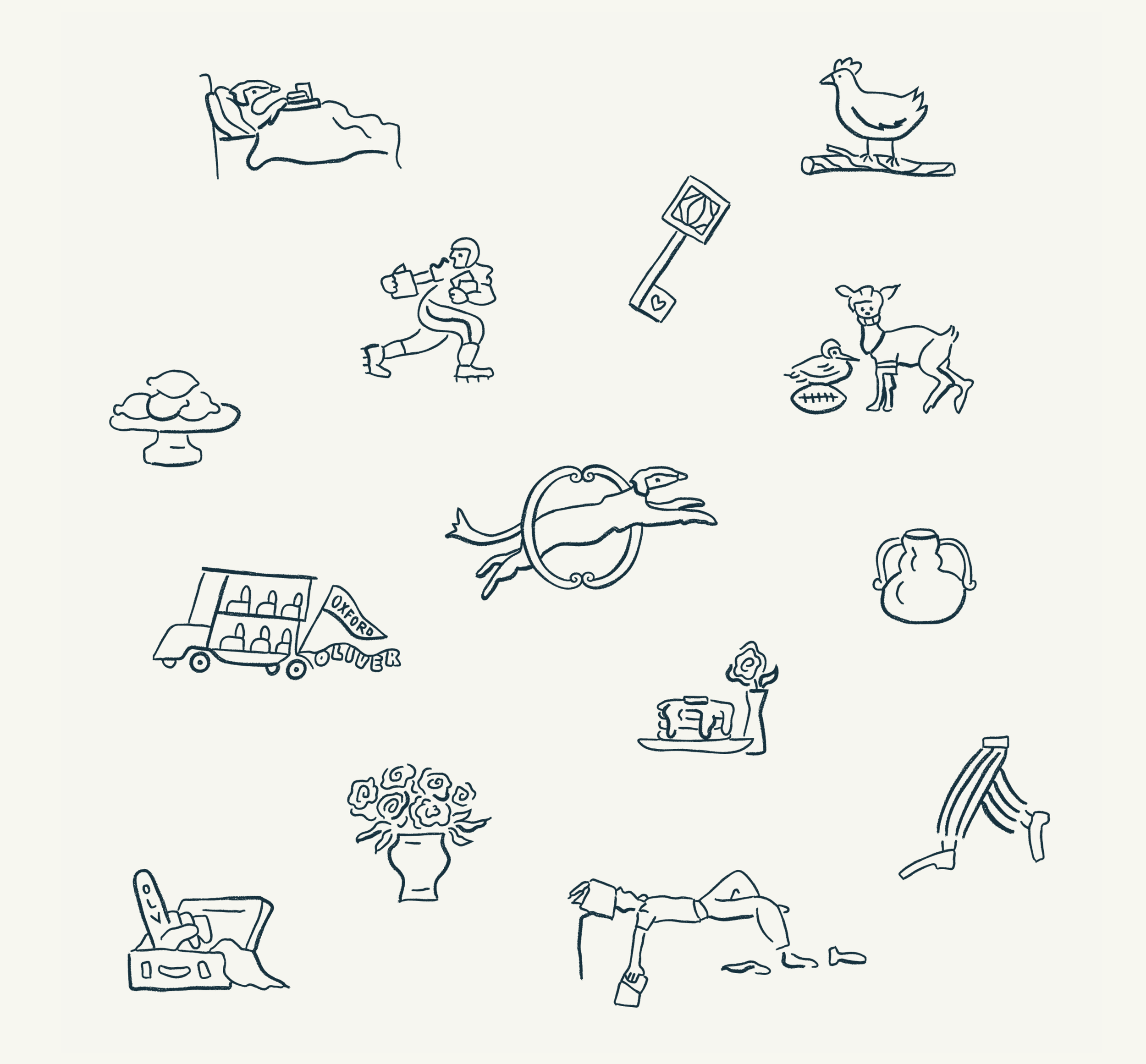Visual identity, illustration, and pattern design for a boutique hotel in the heart of oxford, mississippi.